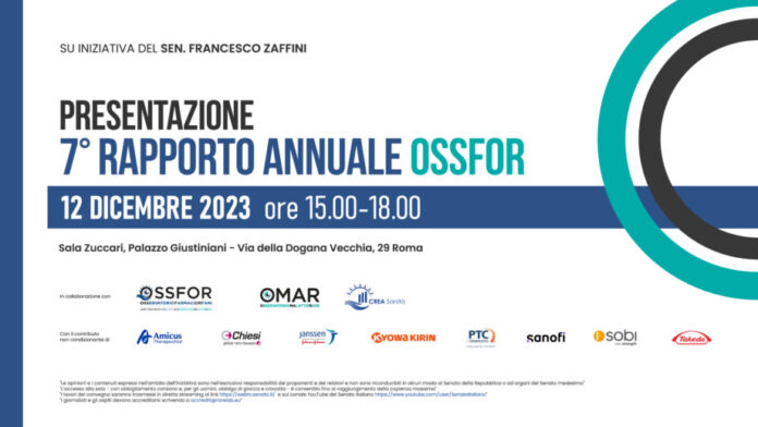 Sarà presentato il 12 dicembre a Palazzo Giustiniani il VII Rapporto Annuale OSSFOR, realizzato da OMaR – Osservatorio Malattie Rare e da CREA Sanità – Centro per la Ricerca Economica Applicata alla Sanità. Il report offre una panoramica aggiornata del mondo delle malattie rare e dei farmaci orfani.